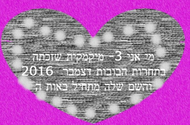 מקווה שאהבתם! :9 מי אני- מיקמקית שזכתה בתחרות הבובה דצמבר 2016 והשם שלה מתחיל באות ה.