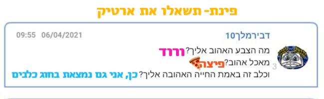 היום בפינה שלי- 'תשאלו את ארטיק' עניתי על השאלות של דבירמלך10 מלפני 6 חודשים כי אז אני לא יכולתי לענות..