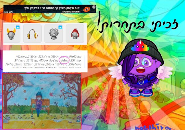 בובי- אני שמחה לשמוע את זה D: מיקוש- וואו זה מלא דברים O: מסתבר שצוות מיקמק נתנו פריטים שונים לכל אחד, והבנתי שגם בכמויות שונות. מעניין למה.. גם אני קבילתי בית מושלג ומטבעות מיקפה, פשוט לא הייתי בטוחה אם זה חלק מהפרסים או רק מתנה שצוות מיקמק נתנו לכולם. |