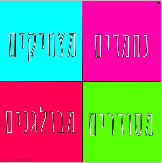 אני בחרתי כחול ואני באמת מצחיקה! בטיול נתנו לי את התואר המצחיקה של הקבוצה |