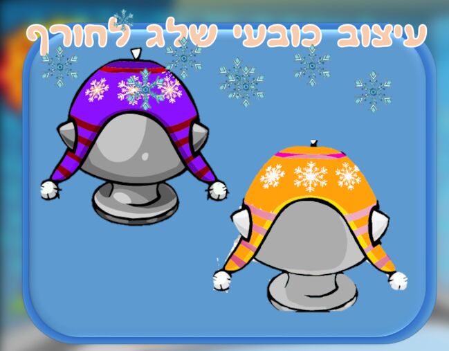 אוקי אז לנושא! אני עיצבתי שני כובעי שלג בצבע סגול ובצבע כתום הכתום לבנים והסגול לבנות :) מקווה מקווההההה שזה יתקבלל :)