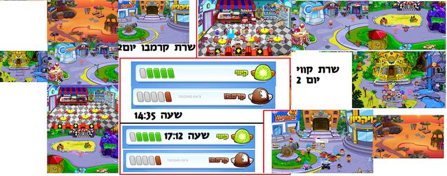 אה, כן ,הוספתי עוד משהו: במרכז התמונה יהיו כמה פעמים שנכנסתי למיקמק בצהריים ובקתי איך השרתים ניראים מלאים או ריקים ניפגש היום בערב ביום 3!!!!! מוזמנים להיכנס לשרת קרמבו וקווי לפגוש אותי בין השעות 18:00 ל18:30 אני לא מבטיחה שניפגש אבל בשעה שש אכנס עם פוזיפוסיל7 לשרת קרמבו ועם בערך ב18:10 תפוחים67 לשרת קווי (תפוחים על שימכם היקר והנכבד) ניפגש אולי |