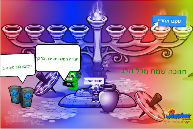 היי לכולם היום אני רוצה לאחל לכולם בברכה חנוכה שמח מכל הלב שיהיה חופש נהדר אם משעמם תלכו לקייטנה אני רוצה לשאול שאלה איזה שיר אתם יותר אוהבים "סביבון סוב סוב סוב" או "חנוכה חנוכה חג יפה כל כך" תענו בתגובות אני סביבון סוב סוב סוב מקווה שאהבתם עד הפעם הבאה ביי