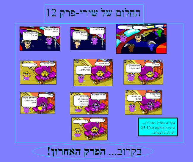 מה פרק אחרון בעוד ארבע ימים?![תיסתקלי בצד,כתבתי את זה ב-21/10] חבל שזה עוד מאת ניגמר... אני רוצה לדעת מה יהיה בהמשך אבל מצד שני אני לא רוצה סוף לקומיקס יצירתי שכזה! |