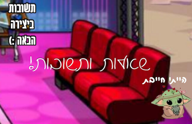 את מכירה את הקהילה שלי? מה הצבע האהוב עלייך? מה המאכל האהוב עלייך? מה המקום האהוב עלייך במיקמק? את מכירה הארי פוטר? את אוהבת לקרוא ספרים? כמה זמן את במיקמק? איפה את עורכת? זהו:) |
