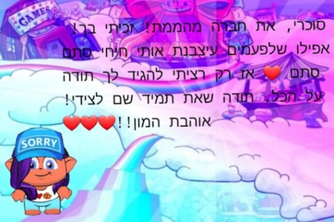 עוגייייי מדהימה שליי ילדה עם לב זהב, מתחשבת, נחמדה, חברותית ומושלמת וכל התכונות שבעולם!!!!!! אוהבתת אותךך מלאא |