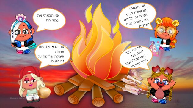 חזרנו ליצירה אני חושבת שזה לבלוג הפרס אבל לא משנה אשמח לדעת אם מצא חן בעינכם רואים שם קומזיצ של חברות גם במיקמק שתים אם מדורה וכל אחת הביאה משהו למדורה מקווה לזכות בעזרת ה'