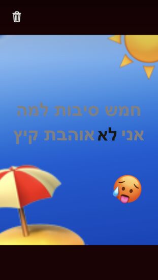 היי פוקפורנים אז היום אני הולכת להסביר למה אני לא אוהבת קיץ, 1. כי חם 2. כי יש ג׳וקים 3. כי יש יתושים 4. כי הפירות פחות טעימים מהפירות בחורף 5. כי החגים פחות טובים (חוץ מהחופש הגדול שזה הכי טוב) מי שמסכים איתי שקיץ זה פחות טוב שיכתוב בתגובות, כמובן שאני לא נגד מי שאוהבת יותר קיץ אבל זאות הדעה שלי. ביי❤️❤️❤️ |