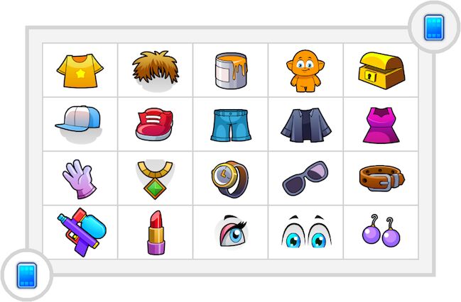 קטגוריות הלבוש המופיעות בארון בסדר יורד: הכל, לובש כעת, צבעי גוף, סוגי שיער, חולצות, שמלות, מעילים, מכנסיים, נעליים, כובעים, חגורות, משקפיים, צמידים, תכשיטי צוואר, כפפות, עגילים, עיניים, ריסים, שפתיים, כלים.