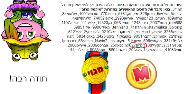 לואי, yaniv, חןמיק, יונימיק, כפירמיק, אביגייל, AceEX, מיהלי, יאנצי, מאיהמיק, ולכל_צוות-מיקמק | |