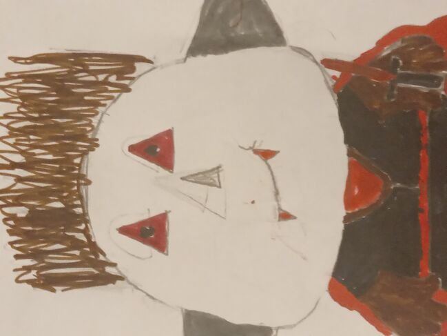 אני מתחיל אז הציור שלי קצת לא יפה אבל אובה אותכם נעם תנו לייק ותרשמו פליז(: ושער חום אוזן אפורה חרב אדומה שחורה גלימה אדומה כפפות אפורת גקט אדום נעלים אדומות מכנסים שחורת שינים אדומת בגלל אדם אף אפור עיניים אדומת אשונים שחורת אוהב נעם