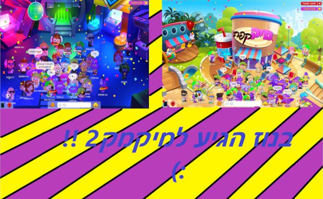היי חברה! מה קורה? מקווה שבסדר? אז עוד כמה ימים חוזרים ללימודים חלקכם כבר חזרתם קיצר! ישר ולעניין! היום ה31.8 בנוז הגיע למיקמק 2! מי שלא מכיר את בנוז אז כדאי שעכשיו תכיר! השם של הערוץ שלו ביוטיוב: banuz תעקבו! אז היה את המסיבה! איזה כיף היה? בנוז פתח בלייב וכמובן שהשתתפתי! גם אתם הייתם במפגש? תכתבו בתגובות והיה שם גם מנהלים! דיברתי אם כמה מנהלים שאלתי אותם שתי שאלות והנה התשובות: אני:אסי השרת הרביעי ישאר? אסי:כן השרת הרביעי ישאר לתמיד אני:אסי מתי הזוכים בתחרות המעצבים? אסי:@#$%^(לא הצלחתי לקרוא כי כולם היו עליו) כן זה רק שאלה אחת אבל אני הולך לעשות משהו מיוחד! אז זהו! זה הכל! יאלה ביי
