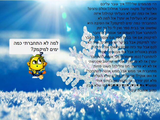 יש איזה מזל שלא פרשת!!! כמה זמן לא העלית יצירה חחח התגעגנו❤️ מבינים אותך הכל טוב אבל תעליייייי |