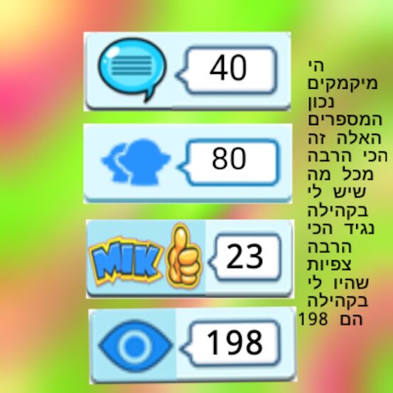 הי מיקמקים נכון המספרים האלה זה הכי הרבה מכל מה שיש לי בקהילה נגיד הכי הרבה צפיות שהיו לי בקהילה הם 198