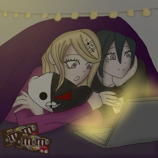 היי חברים!! אז שיניתי סטייל של הציור & הצביעה שלי :). אם אתם לא מכירים הם ממשחק וידאו בשם "דאנגאנרונפה" (במכרה הזה v3) והם חברים ממש טובים,תומכים אחד לשני וזה,אז לקחתי השראה וציירתי אותם במסיבת פיג'מות נחמדה:>. (קוראים לבן מצד שמאל שואיצ'י/shuichi לבת בצד ימין קאיידה/kaede) מקווה שיהיה הערכה ואולי אפילו שיזכה בתמונה היומית. לקח לי בערך שעתיים וחצי לצייר את זה,והשקעתי בציור מאוד!! גם בפרטים הקטנים כמו העיניים,המחשב,והשמיכה! מקווה שמיקמק ישימו לב וזהו נראה לי.
