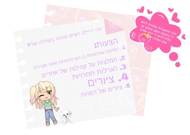 המלצות על קהילות של אחרים תעשי על שלי אחת וגם הקומיקס נישמה מגניב ולא הצלחתי לראות מה כתוב בבואת הדיבור שיש בצד הכתב יצה קטן מידי |