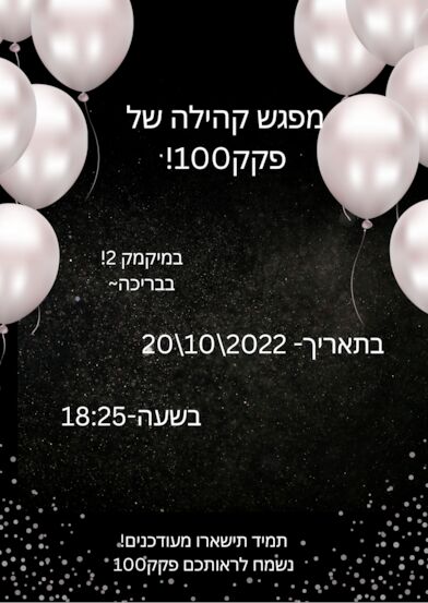 פקקושים אני בהתרגשות שיא! שמעתם נכון~ כן כן יש מפגש תבואו! יום חמישי הקרוובב בשעה 18:25 בבריכה במיקמק 2! תבואו יהיה כייף ושמח! אני ממש אשמח לראותכם! תגיעו???? אוהבת מלא ומתרגשת מאוד פקק100
