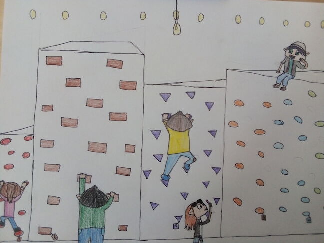 ציירתי יצירה לבלוג הפרס, בציור רואים מתחם קיר טיפוס ובו 6 דרגות קושי שונות. בצד ימין למעלה רואים את המיקמק שלי מצטלם במעלה קיר הטיפוס ולמטה את אמו מצלמת אותו, באמצע יש מיקמק שמטפס ברמה 2, לידו מיקמק מטפס ברמה הכי קשה-רמה 6 והכי בצד שמאל יש ילדה בתחילת הטיפוס ברמה 1. מקווה שאהבתם! ❤️ כל הזכויות שמורות לקרחון109 כל היצירות שלי צוירו בעבודת יד!