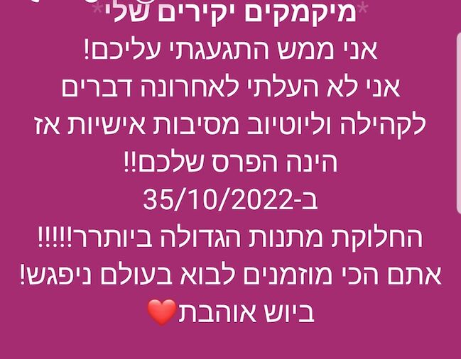 הלוואי שהייתי יכולה להגיע זה נשמע ממש מגניב❤ אני לא יכולה לבוא כי אני לא יכולה להוריד מיקמק.. שימי לב שאין תאריך כזה ה35.10 אולי התכוונת ה3.11.. ❤ |