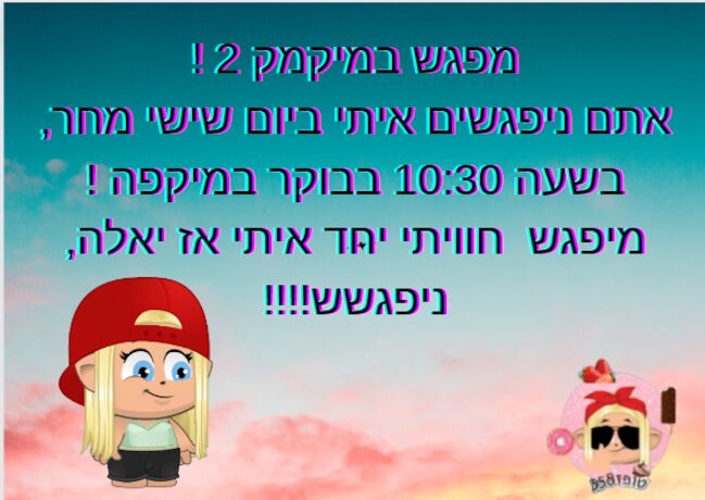 היי מיקמוקים מהניש?,אז ביום שישי שזה מחר הולך להיות מיפגש איתי במיקמק 2 במיקפה אז כולם מוזמנים