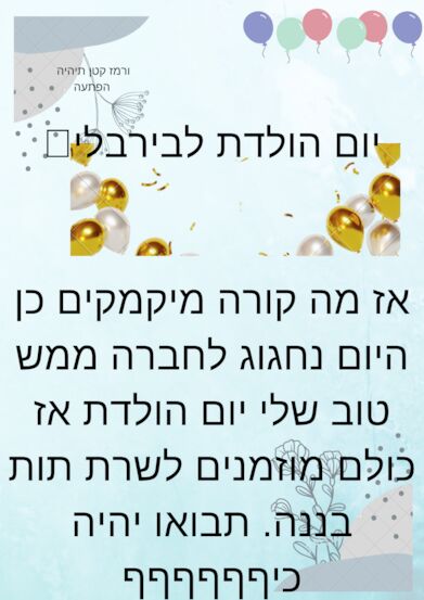לצערי אני כנראה לא אצליח להגיע:( מזל טוב בירבלי!! |