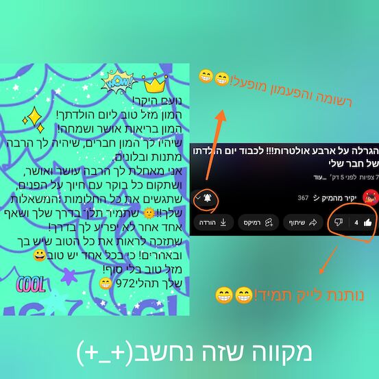 אז היי חברים! מה קורה? איך אתם? מה איתכם? אני בסדר גמור :) היום יום הולדת היום יום הולדת היום יום הולדת לנועםהנסיך2 היום יום הולדת היום יום הולדת היום יום הולדת לנועםהנסיך2 חג לו שמח וזר לו פורח היום יום הולדת לנועםהנסיך2 חג לו שמח וזר לו פורח היום יום הולדת לנועםהנסיך2 מזל טוב!!! אז חברים היום יש יום הולדת לחבר טוב של יקיר מהמיק: "נועםהנסיך2" ויש אתגר בערוץ יוטיוב של יקיר: מי שעושה את הברכה הכי יפה ומושקעת זוכה באולטרה נדירים! אז זאת הברכה שלי! ממש השקעתי אז אני מקווה שנועםהנסיך2 ויקיר יאהבו אותה! אז חברים לא כתבתי את הברכה בתגובות כי יש לי תקלה מאז שיש לי את הטלפון הזה: אני לא יכולה לכתוב תגובות לראות שידורי חי, בכורה ולייבים. ולכן העליתי את היצירה הזאת לקהילה. חברים הברכה הזאת לא רק בשביל לזכות!! עם יש לכם יום הולדת ואתם רוצים ברכה תפנו אלי ואני יעלה יצירת ברכה רק בשבילכם! חברים שלי! אני מקווה שאהבתם את היצירה אז עד הפעם הבאה יאללה ביי! --------------------------------------------------------------------------------- #אין להעתיק, לצלם, לשכפל או כל דבר אחר! שלכם תהלי972 :) --------------------------------------------------------------------------------- יש לכם שאלה? בקשה? הזמנה? אתגר? פנייה מסוימת? רוצים לעשות איתי שת"פ? תכתבו בתגובות/תשלחו לי חברות במיקטוק ורוב הסיכויים שאני יענה לכם! שלכם תהלי972 :) --------------------------------------------------------------------------------- יש לכם יום הולדת ואתם רוצים ברכה אישית ממני? תשלחו לי חברות במיקטוק/תכתבו בתגובות ואני יעלה יצירה רק בשבילכם! שלכם תהלי972 :)