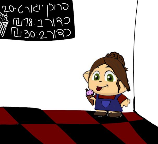 ציירתי מיקמק אוכל גלידה בגלידרייה.