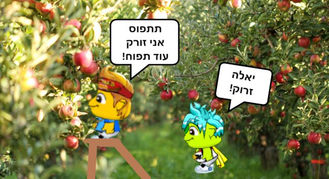 היי חברה אני יודע אני יודע לא כזה מושקע לא היה לי זמן מצטער אבל יצא סבבה אני וחבר שלי הלכנו לקטוף תפוחים בשדה של דוד שלי הוא זרק עליי כמה תפוחים כדי שאני יתפוס(אם מישהו הולך בשדה ורואה תפוחים על הרצפה זה בכלל לא בגלל שלא הצלחתי לתפוס) אז זהו מקווה שנהנתם
