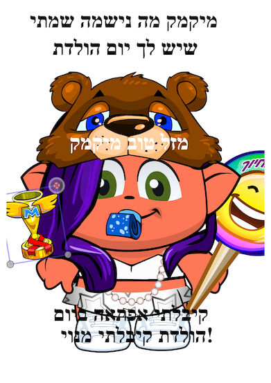 מזל טוב מיקמק היום יש לו יום הולדת!!!!! מזל טוב אני אוהבת אותך שתיזכה לשנים רבות ושהילדים שלי ישחקו בך אמן הוא אביא לכול מיקמק מנוי איזה מגניב ליכבוד היום הולדת שלו איזה כף תודה מיקמק ויוצרי מיקמק על זה שיצרתם את מיקמק תודה