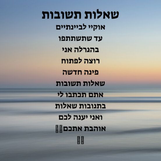 אני יעשה מהר תשובות לכל השאלות שלכם בקרוב תעקבו |