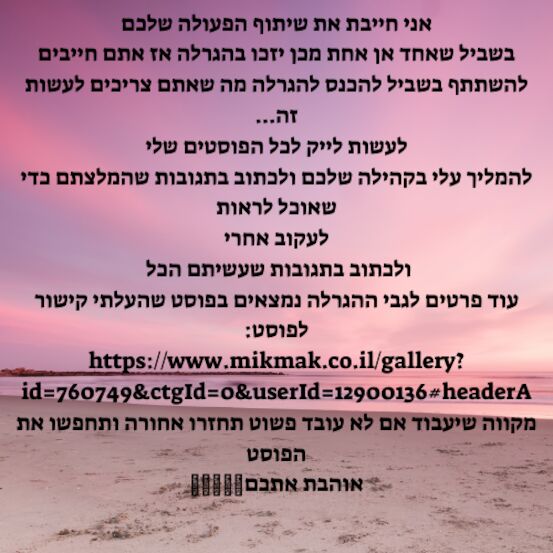 בשביל שאוכל לעשות את ההגרלה אני צריכה את שיתוף הפעולה שלכם מי שהמליץ עלי בקהילה שלו שיכתוב לי בתגובות כדי שאוכל לראות יאללה אתם לא רוצים לזכות אם יש לכם קהילה תודיעו לעוקבים שלכם שיש פה הגרלה ומתי שתיהיה לכם הגרלה אז תגידו לי שאוכל גם להודיע פה היה לי יומולדת במיקמק לפני כמה ימים תחשבו על זה בתור מתנה ליומולדת בבקשה החלום הכי גדול שלי זה שניהיה הקהילה הכי גדולה ומטורפת במיקמק אוהבת אתכם