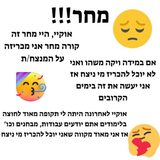 מחר אני באמת אשתדל להכריז על המנצח/ת אני היום אבדוק אם מי שישתתף עשה הכל!