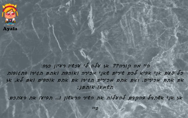 וואו איזה רעיום מקסיםםם ואני כותב בדיילי משום מה... נ.ב: את מושלמת ואותו דבר הקהילה שלך |