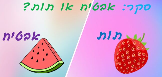 אבטיח אני מרגיש מזה בודד פשוט יום אחד אכלתי תות והיה לו תעם נןרא ואז הוצתי אותו מהפה והיה שם תולעת |