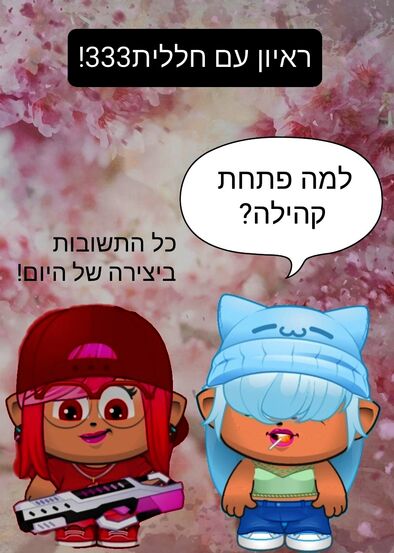 וואו תודה רבה לכולם! מיקמוגלי תודה רבה לך! הדסס תודה רבה העלה ראיון בקרוב! נועמיק תודה רבה לך! פטללל חיים שליי מהממת שאת! תודהרבה על התגובות החמות! הייתם רוצים שאעשה משהו נחמד לכבוד פורים! |