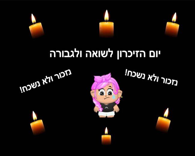 שלא נשכח את מה שצהל עברה והאנשים שהיו בשואה מוגלי9988 צודק לגמרי אבל רוב האנשים לא למדו על זה והם לא יודעים את המשמעות שמה שהם עברו בשואה שלא נשכח אותם קימוש יצירה מהממת מאוד אהבתי את העיצוב ואת הרקע מהמם אוהב את כולכם אוהב מנסהvלחזור או אדיר!! |