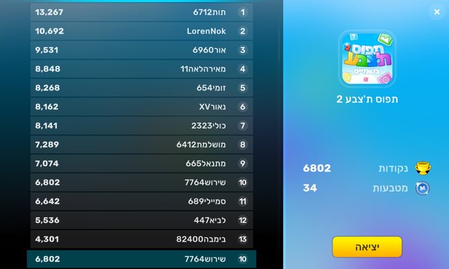 ואווו עקבתי, בהצלחה להגיע ל-10:) |