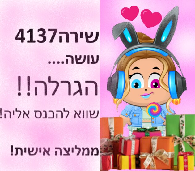 היוש נדירים שלי!!! אז מניש??? טוב אז רציתי להודיע לכם ... ש..... שירה4137 עושה הגרלה!!!!!! שווא להרשם! יש שלוש מקומות! ממש שווא לכם להכנס לקהילה שלה! היא חברה מאוד טובה שלי במציאות ואני מאוד ממליצה לכם עליה!!! היא משקיענית ברמותתתת והיא מאוד חמודה! אז למה אתם מחכים? רוצו לקהילה שלה!!!