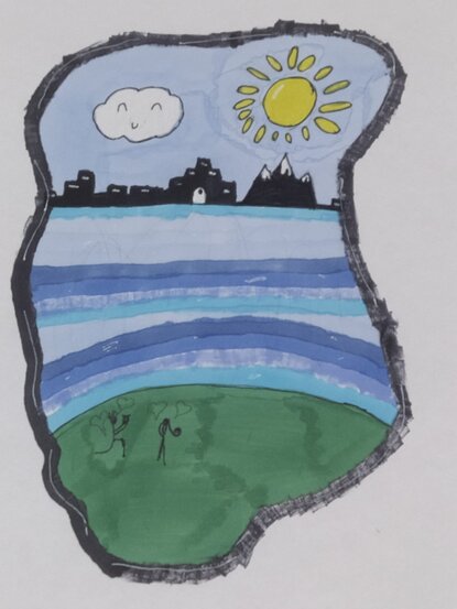 היי חברים היום ציירתי שמים של בוקר עם שמש וענן חמוד, ציירתי מים בכל מיני צבעי כחול, ציירתי דשא שעליו איש שרוצה להתחתן עם אישה וציירתי עיר שחורה עם חלונות לקטנים לבנים כאילו שרואים את העיר מרחוק. תוכלו לתת לי הצעות מה לשלוח עוד בקהילה? לא חייב לתת לי הצעות. אוהבת אתכם!