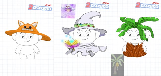 כובע עלים יחד עם גזע עץ בננות - לתחושה גבוהה כובע מכשפה - כי אנחנו אוהבים קסמים ספר מכשפים - מרחף עם קסם גלימה - IDK כובע שועל - לאלמוג שלא תחפור