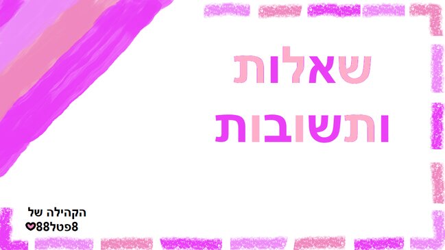 תודהה רבהה לכולם על השאלות בעז"ה אני יענה ממש בקרוב!!❤️ וכמו שאמרתי אם יש שאלה שהיא אישית מידי אני פשוט ידלג...מצטערת:) 8פטל88✨✌️ |