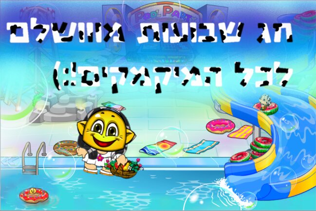 מצאתי את הסמיילי הוא בגלגל ים האדום , שבועות שמח ועכשיו סקר: 1) לאכול את הדברים בטנא ולגרות את החברות חחחח. 2) כן אבל רק אחת מסוימת 3) מאוד שמחה חופש גדולללללללללללללללל ווהו! יצירה יפה |