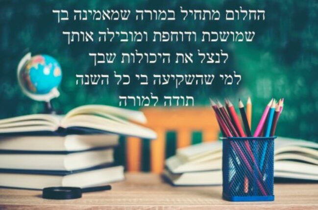 עוד רגע נגמר שנת הלימודים וצריך לתת למורה את כל מה שהיא נתנה לנו במשך השנה אז תביאו למורה משהו קטן...