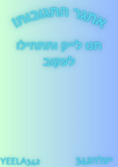 היי כולם! באמת תודה על כל העוקבים שלי! אין עליכם! אני אולי עוד מעט יעלה יצירה לבלוג הפרס (מקווה מאוד לזכות!....) קיצקוץ אני יעשה הגרלה בקרוב (חמישים עוקבים) קטן עליכם! אזז אני מתלבטת על מה לעשות את ההגרלה אם יש לכם רעיונות תכתבו לי במיקטוק :)) באתי לומר אם מישהו רוצה שאני אקדיש לו שיכתוב לי גם במיקטוק אזז מתה עליכם ביוששש |