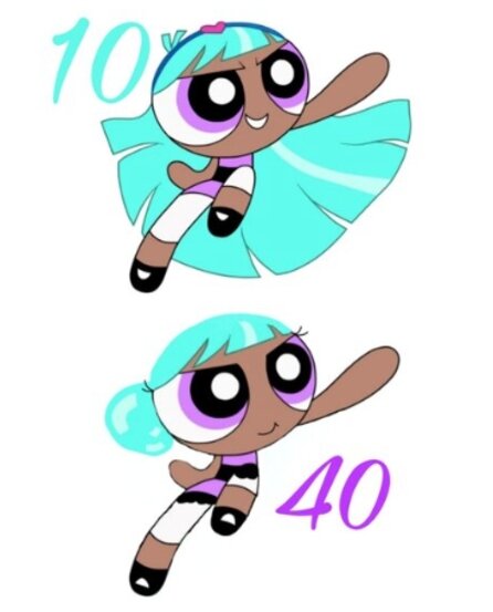 זה לא נתן לכתוב הכל בקוטרת. היא היתה אמורה להיות, ציירתי במחשב את בת דודה של בנות הפאוור פאף בגיל 40