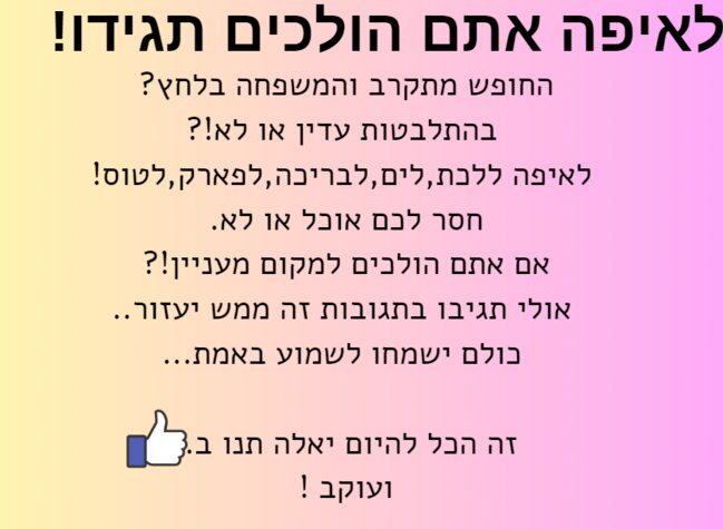 תודה רבה לכל התומכים בי וסומכים עלי שזה למטרה טובה! |