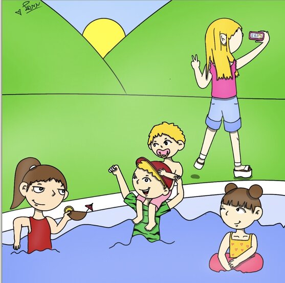 בתמונה רואים משפחה שלמה בבריכה!! (אולי בלי אבא ואימא אבל עדיין.. חחח)