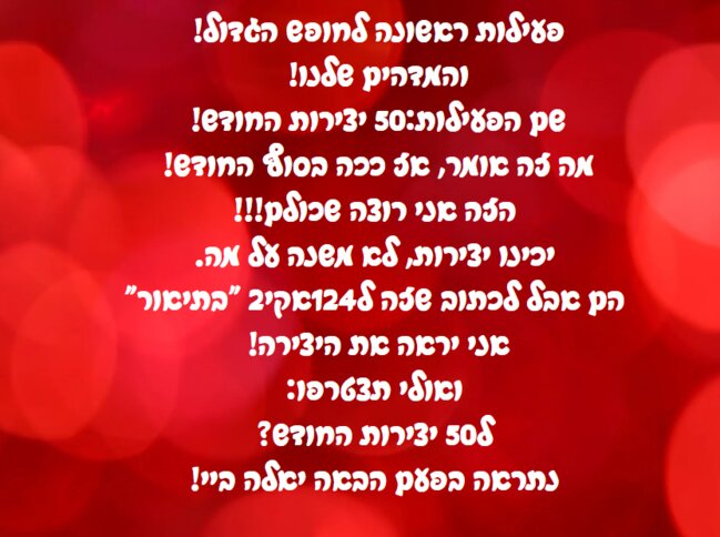 פעילותת! וואי פעילות זה כל כך כיף!! במיוחד שזה "בחופש הגדול" והמיוחד צוות מיקמק !! מכינים לנו מלאאא הפתעות! (לפי מה ששמעתי) מה הפעילות על מה היא? --------------------------------------------------------------- חלק:2 הסבר! כל אחד צריך להכין יצירה לא משנה על מה היא ! אפשר בלוג הפרס/מיקשימה/ועוד! 4 היצירות הכי יפות יזכו להיות בדו קרב של יצירות! ואז השתים שישארו. יכריעו את של מי היצירה הכי יפה בחודש! מה צריך לעשות בשביל שאני ידע? שאתם משתתפים פשוט מאוד להקדיש לי!! יאלה ביי