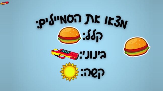ההמבורגר בצד ימין באמצע הבלאסטר בפינה למעלה מצד שמאל והשמש מאחורי השמש |