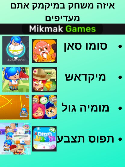 1:תפוס ת'צבע 2:סומו סאן 3:מומיה גול 4:מיקדאש |